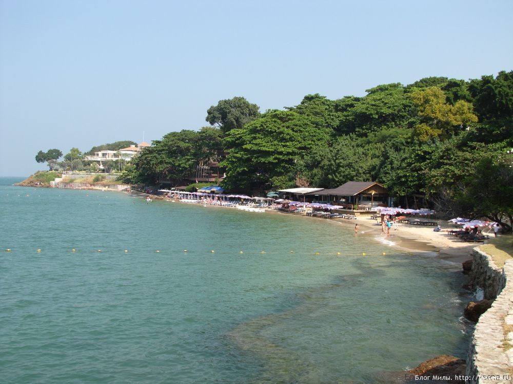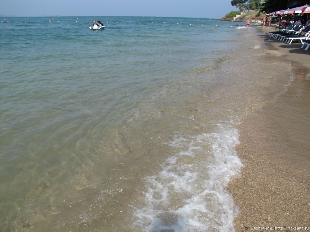 На этом пляжике, пожалуй, самая чистая вода в Паттайе, хотя до островной воды с белым песком она и не дотягивает.