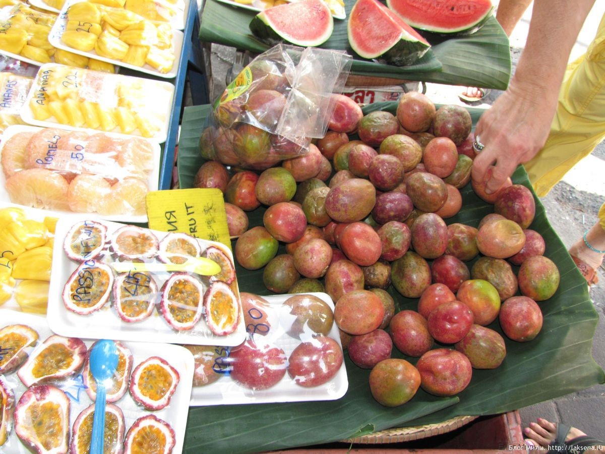 В Таиланде этот фрукт бывает двух видов. Чаще всего можно встретить фрукт золотистого цвета размером с грейпфрут, но бывает плод пурпурно-фиолетового цвета, который немного меньше по размеру, примерно с лимон. Желтые плоды маракуйи крупнее фиолетовых, но мякоть фиолетовый плод имеет слаще, аромат интенсивнее, а общий вкус – богаче. Кроме того, у фиолетового «плода страсти» кожура тоньше, а это означает, что сочной мякоти у него больше.