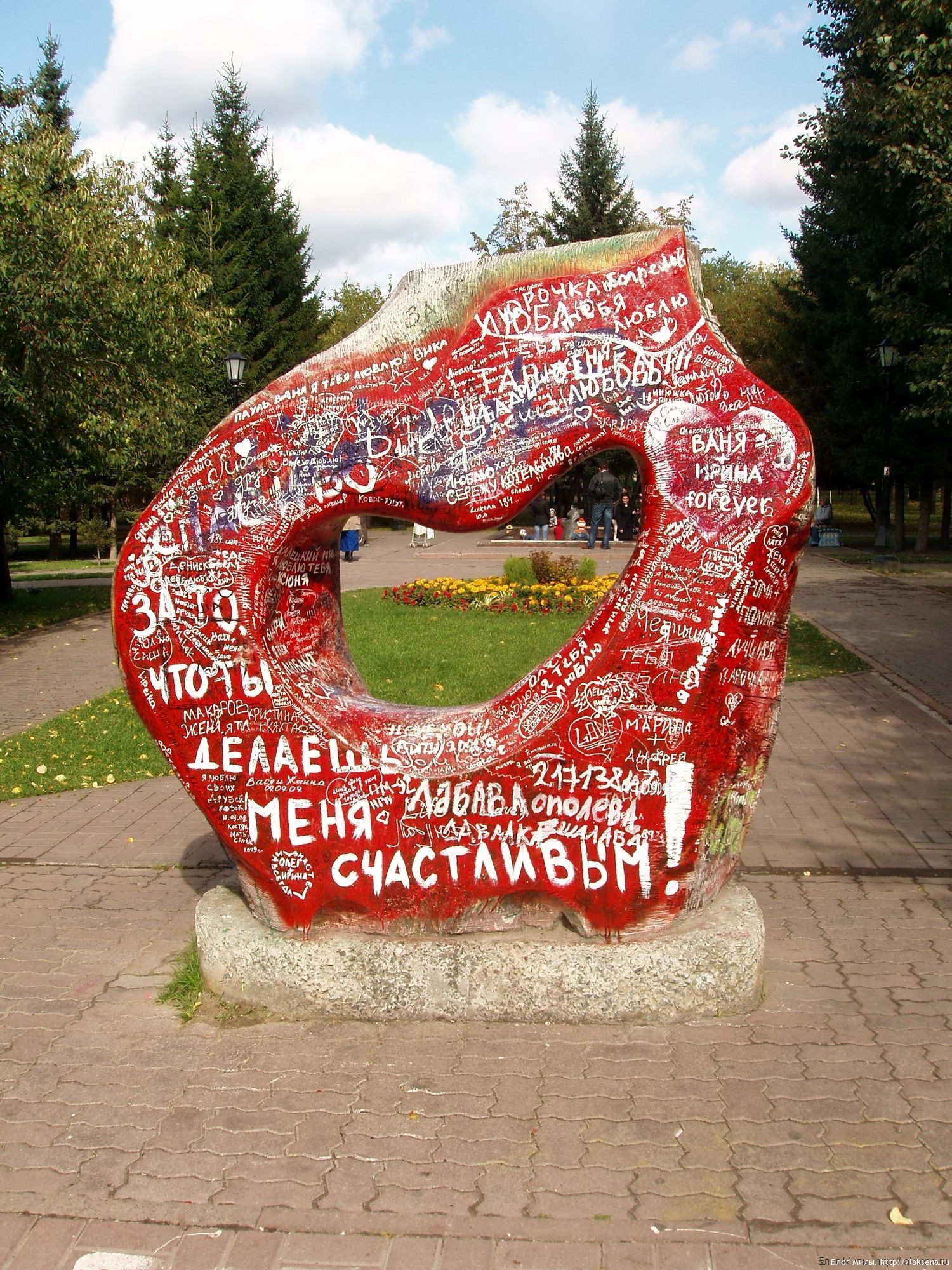 Новосибирский скульптор Санду Бортник назвал свое творение “Любовь”. К нему сейчас после привычных мест: Никольской часовни и Оперного театра подходят фотографироваться на память новобрачные. Возлюбленные могут написать имена друг друга в знак долговечности отношений.