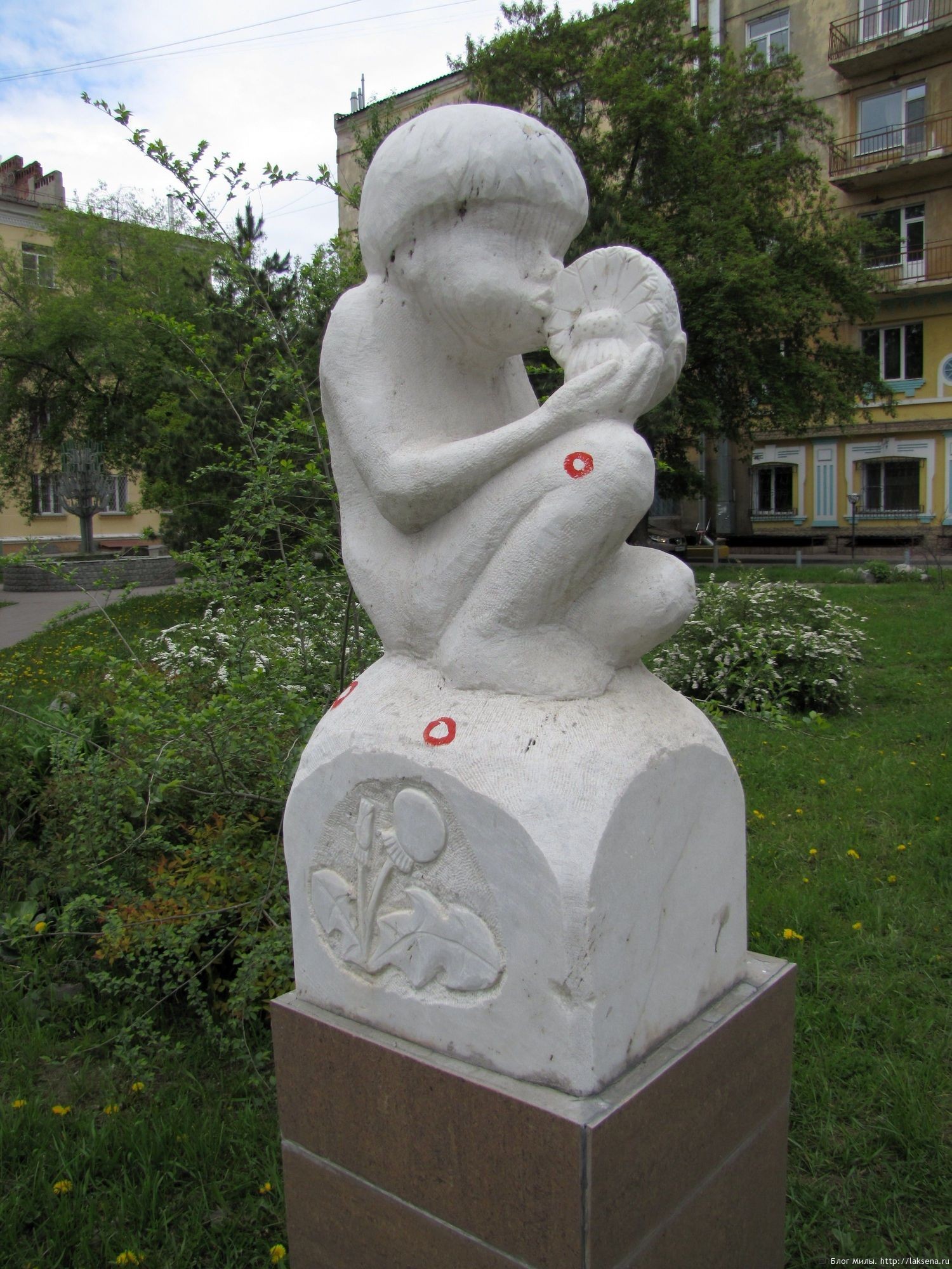 Скульптурная композиция «Мальчик с одуванчиком», он же «Серёжа». Скульптор Александр Маркин (Барнаул). Установлена в 2007 г. на улице Серебренниковская, 5 в Центральном районе Новосибирска по итогам III симпозиума каменной скульптуры. По мнению автора, «скульптура олицетворяет человека, познающего природу и мир».