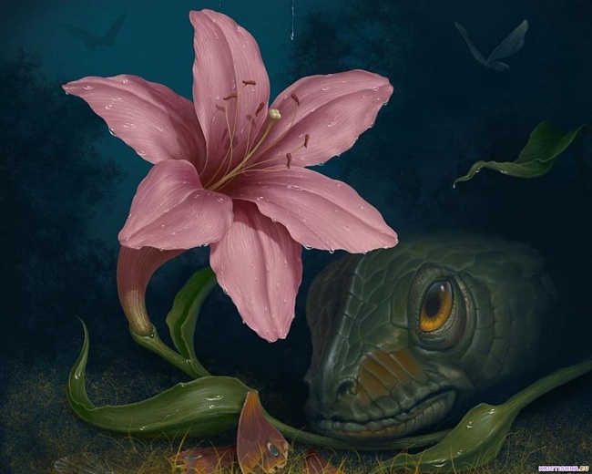 Дракон смотрит на закат. На фоне облака цвета фуксии танцуют две огромные птицы. Они то сшибаются друг с другом, то разлетаются в стороны. Дракону не понять, почему люди обречены ссориться с теми, кого больше всего любят. Дракону больше всего хочется хоть немного приблизиться к этой стороне Любви. Он давно Живет среди людей, но так и не смог разобраться в главном.