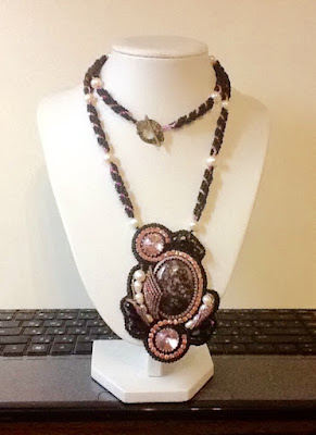 Кошачий глаз, жемчуг. Вышитые элементы сложились в два украшения, а планировалось все, конечно, не так..., даже сто раз прорисованный эскиз не помог...!