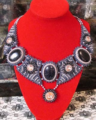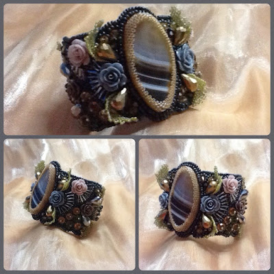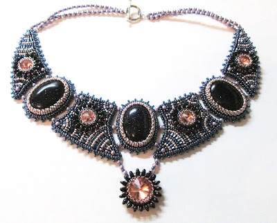Кабошоны темно-синего авантюрина, бисер чех, ривольки китайские, но сияют на полноценного "сваровского")))!