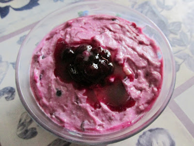 Крем-чиз с голубичным вареньем, вкус нежный, творожно-сливочный. Хлопот минимум, а результат великолепен!