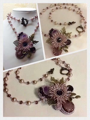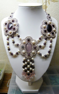 Кошачий глаз, жемчуг. Вышитые элементы сложились в два украшения, а планировалось все, конечно, не так..., даже сто раз прорисованный эскиз не помог...!