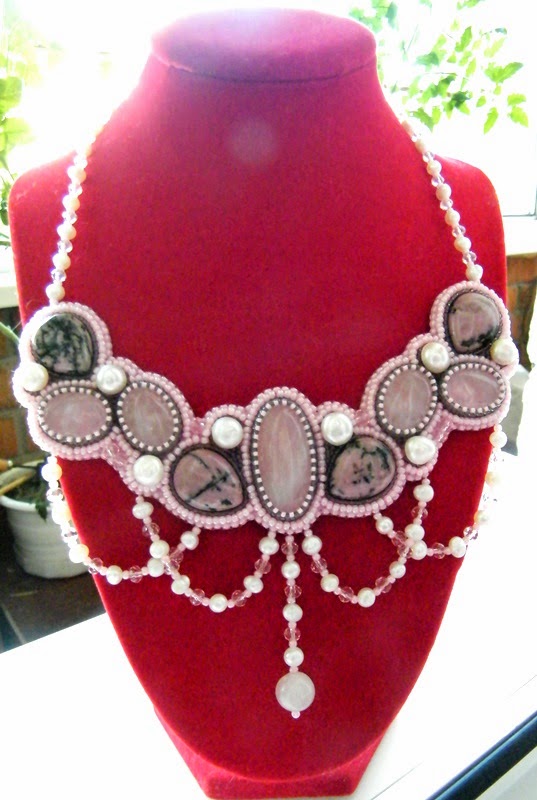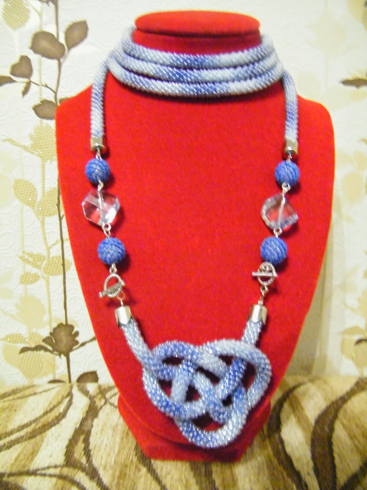На таком маленьком манекене колье выглядит крупным, но это обман зрения...))) Цветы сплетены из мелкого японского бисера Тохо №15. МК выложить не могу, автор его продает, но для "бисернутых" на всю голову это только на руку - берем все!