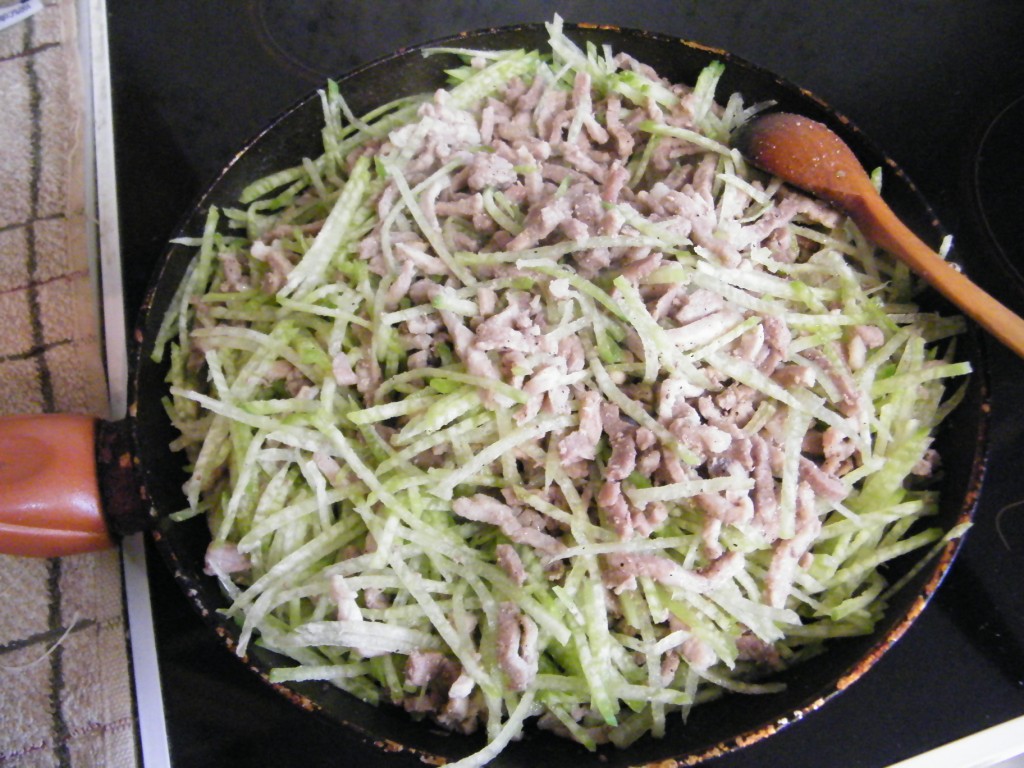 [показать] Готовится оно быстро, главное не зажарить его сильно. К практически готовому мясу добавляю редьку