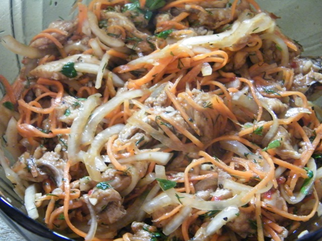 Все, кому не безразлична корейская кухня, знают салат "ХЕ", а уж не готовил его только совсем ленивый. Тайных рецептов тоже не перечесть, но мне скрывать нечего, рецепт очень прост и съедается любителями "острых ощущений" на раз,
