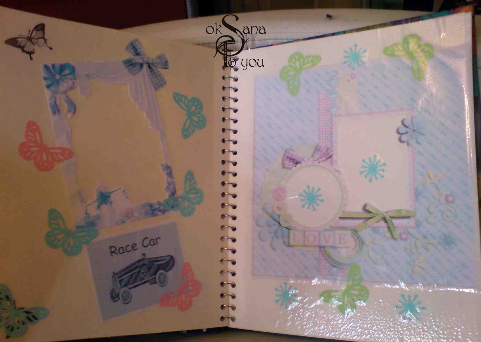 Для украшения белого листа я использовала штампы и дырокольных бабочек, фотографию распечатала вместе с рамочкой обработанной в фотошопе и всё это просто замагнитила прозрачным листом. По тому же принципу сделала и остальные странички :)
