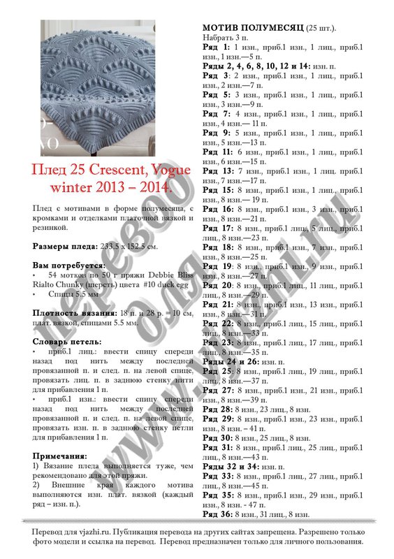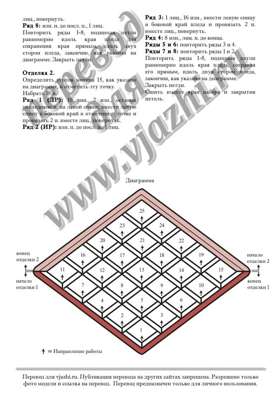 Перевод описания вязания пледа с английского языка.