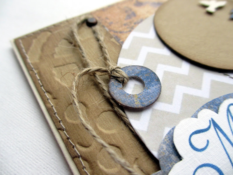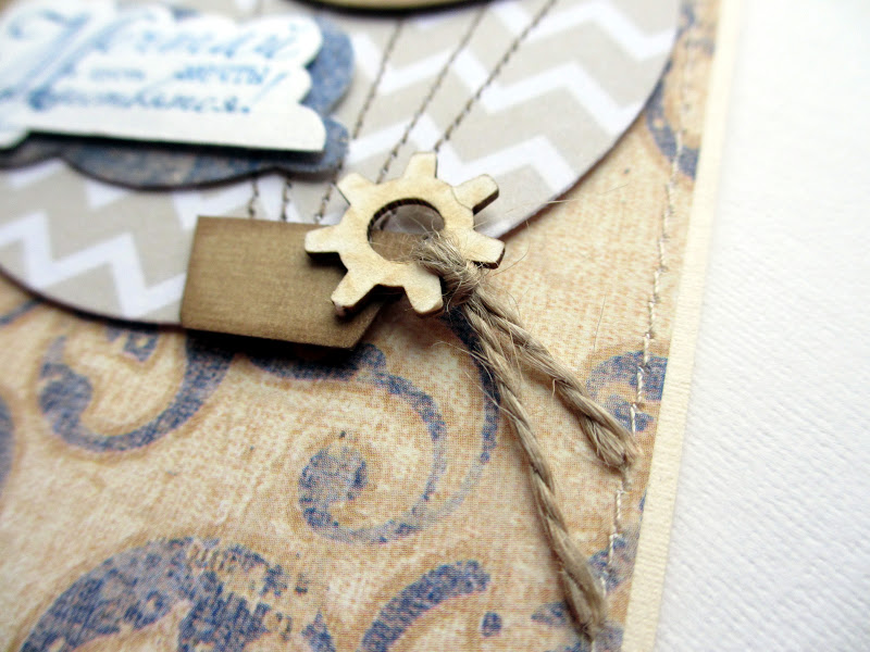 тиснение с винтажными шестеренками, джутовый жгут, деревянные фигурки-шестеренки, брадсы под медь, машинная строчка, тонировка краев.