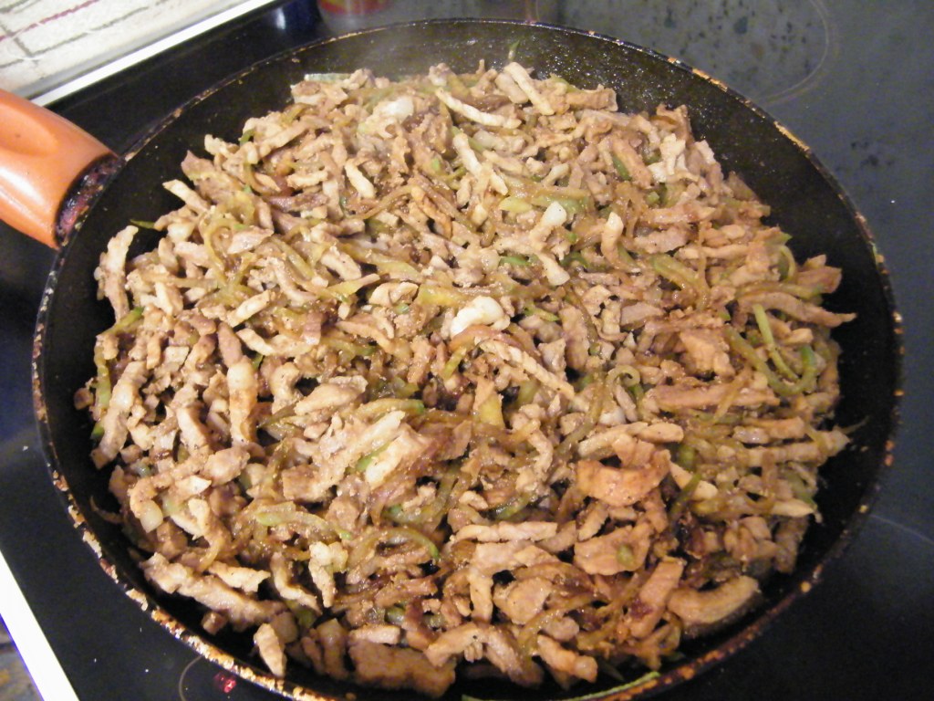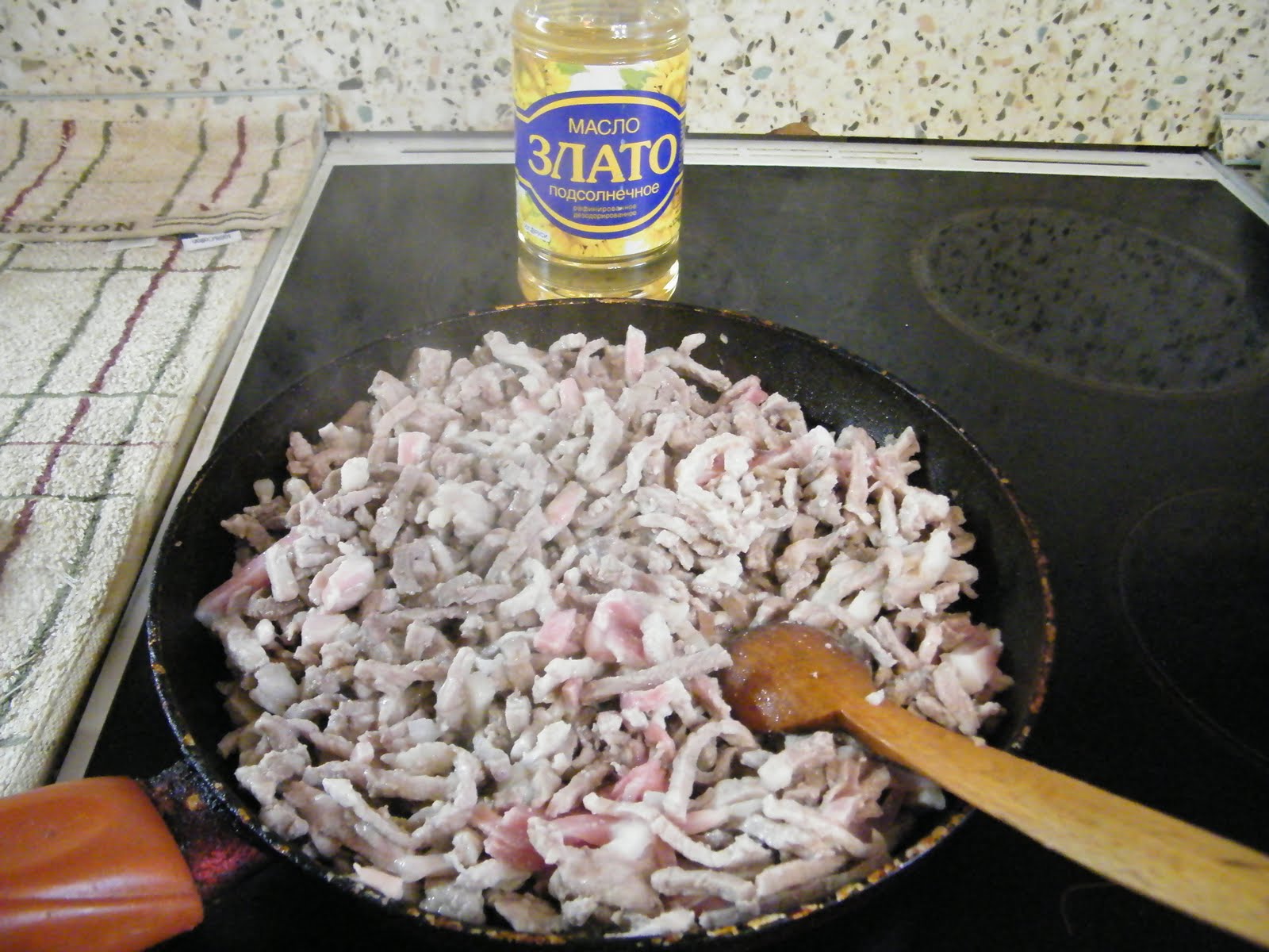 [показать] С периодичностью помешиваю мясо, не давая ему схватиться корочкой. Солю немного, перчу по-вкусу