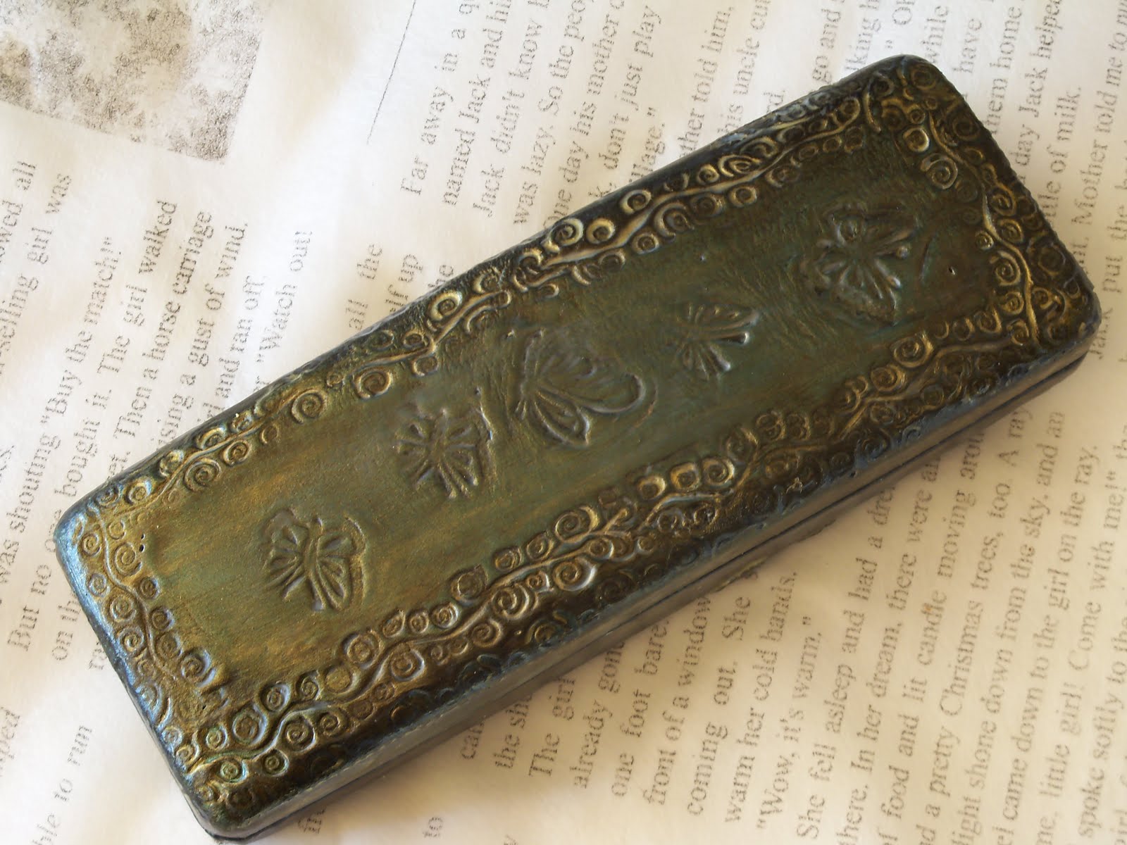 Потом я взяла наждачку самой крупной зернистости, прям как терка для морковки ))) и местами поцарапала поверхность, чтоб черные мелкие точки просвечивали. Например, на передней боковинке крышки, справа. Сзади тоже чуток сделала царапок.