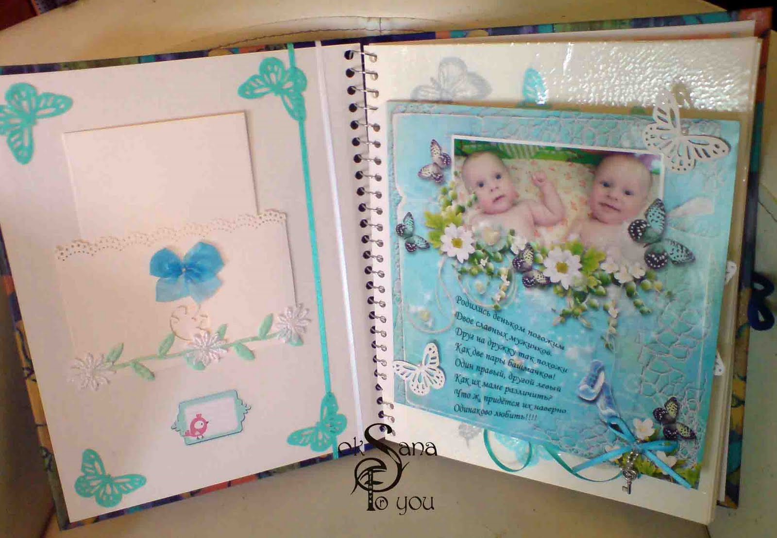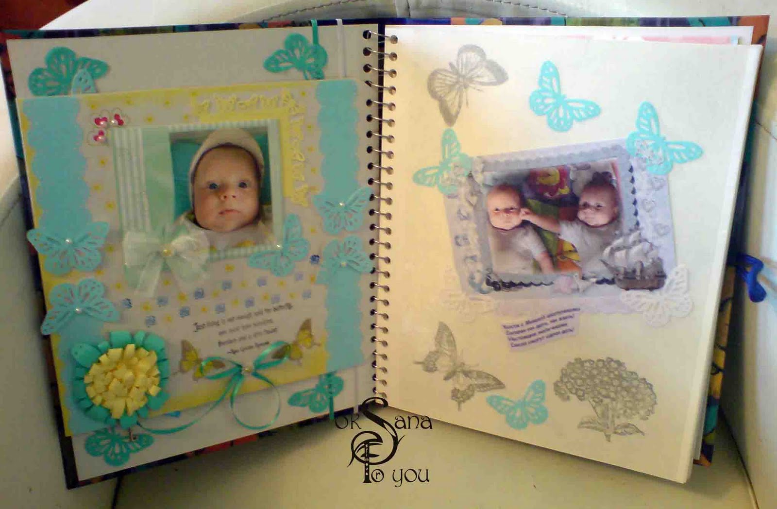 Как я уже писала ранее - поступил мне необычный заказ. Альбом в подарок маме двух очаровательных близнецов :) Но дело в том, что мама этих самых близнецов просто обожает альбомы с магнитными листьями. И поэтому мне предоставили стандартный альбом на 10 листов который мне предстояло превратить в очаровательный альбом для новорождённых близняшек.