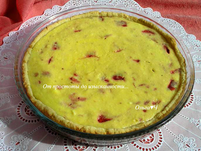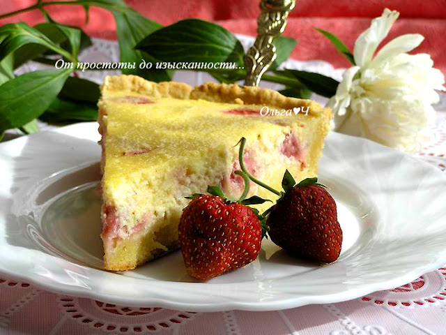 Достать из духовки основу пирога, залить начинку, разровнять. Снова поставить творожный пирог с клубникой в духовку на 30-35 минут. Подавать пирог охлажденным.
