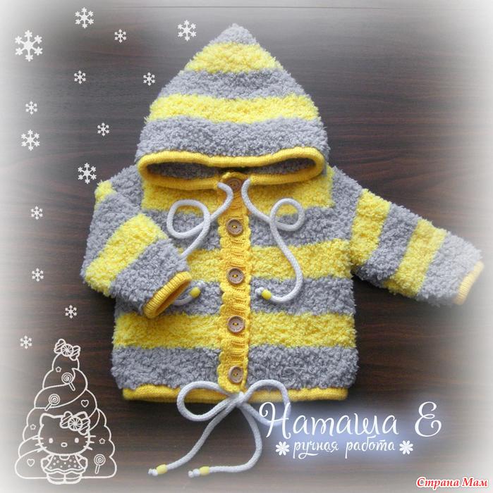 Курточка на полгодика, связана из пряжи Вита плюш. Я в восторге от этой пряжи. Курточка получилась просто невесомая.