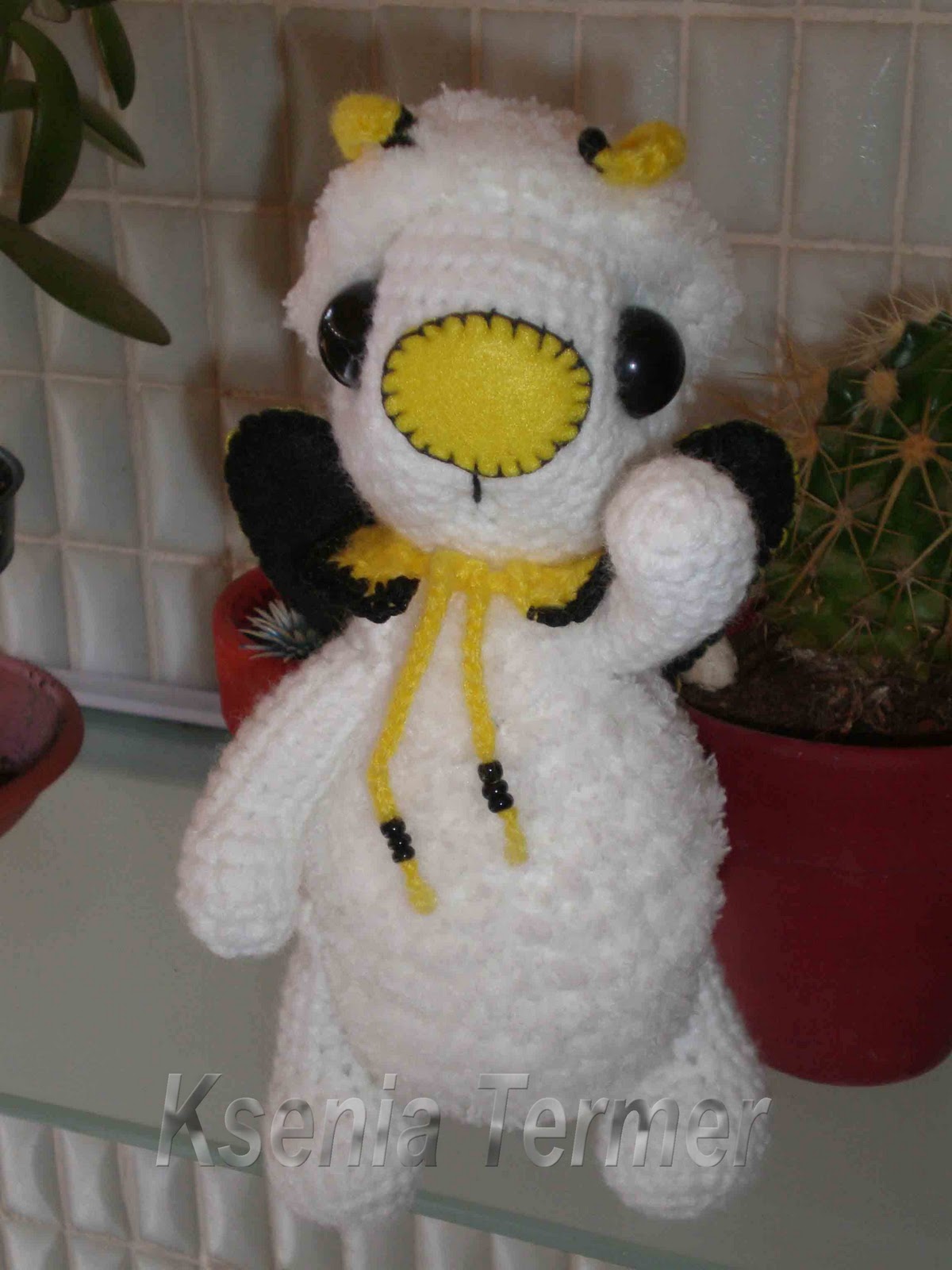 Я и не думала про пчел,хотела плюшевого белого мишку связать,но когда примерила голову(еше без глаз)к туловищу,то сразу поняла,что это самый настоящий пчел.
