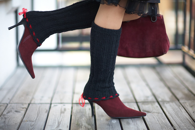 Особенно красиво, на мой взгляд, смотрятся обтягивающие вязаные гетры, одетые поверх сапожек.