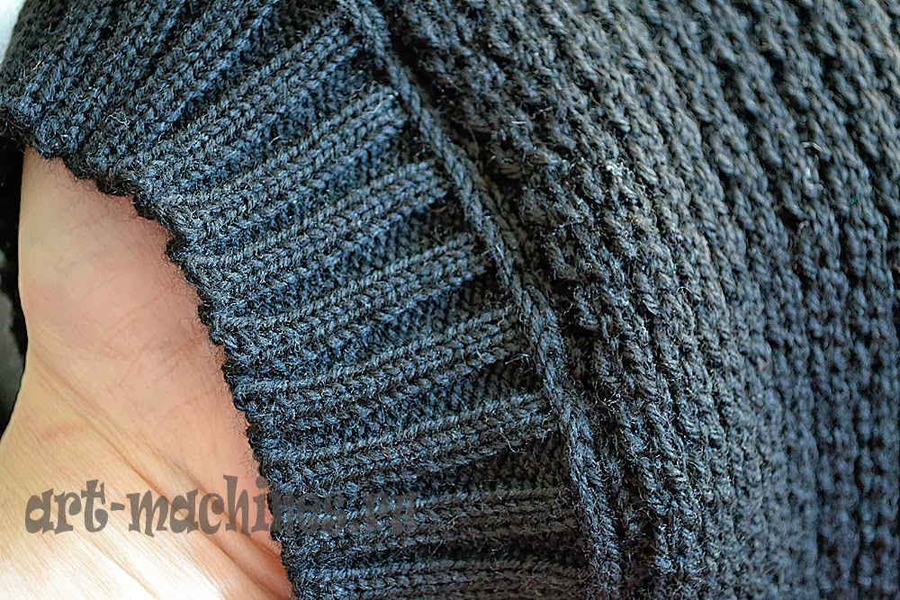 .снизу можно связать любую резинку и перейти на полный ластик (все иглы в работе)на Н, игольный шаг на деление 5 ,плотность на двух игольницах 6:6( а можно и больше)