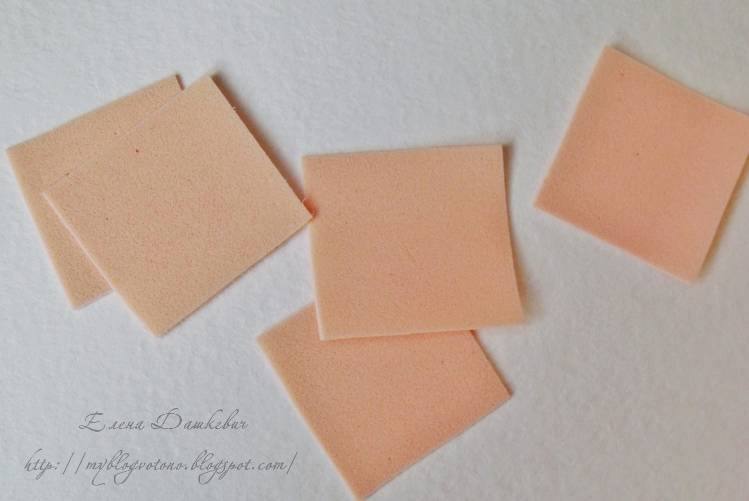 Для бутончиков нарезаем небольшие квадратики (или большие, в зависимости от того, каких размеров вы хотите получить цветок). У меня примерно 2 на 2 см.