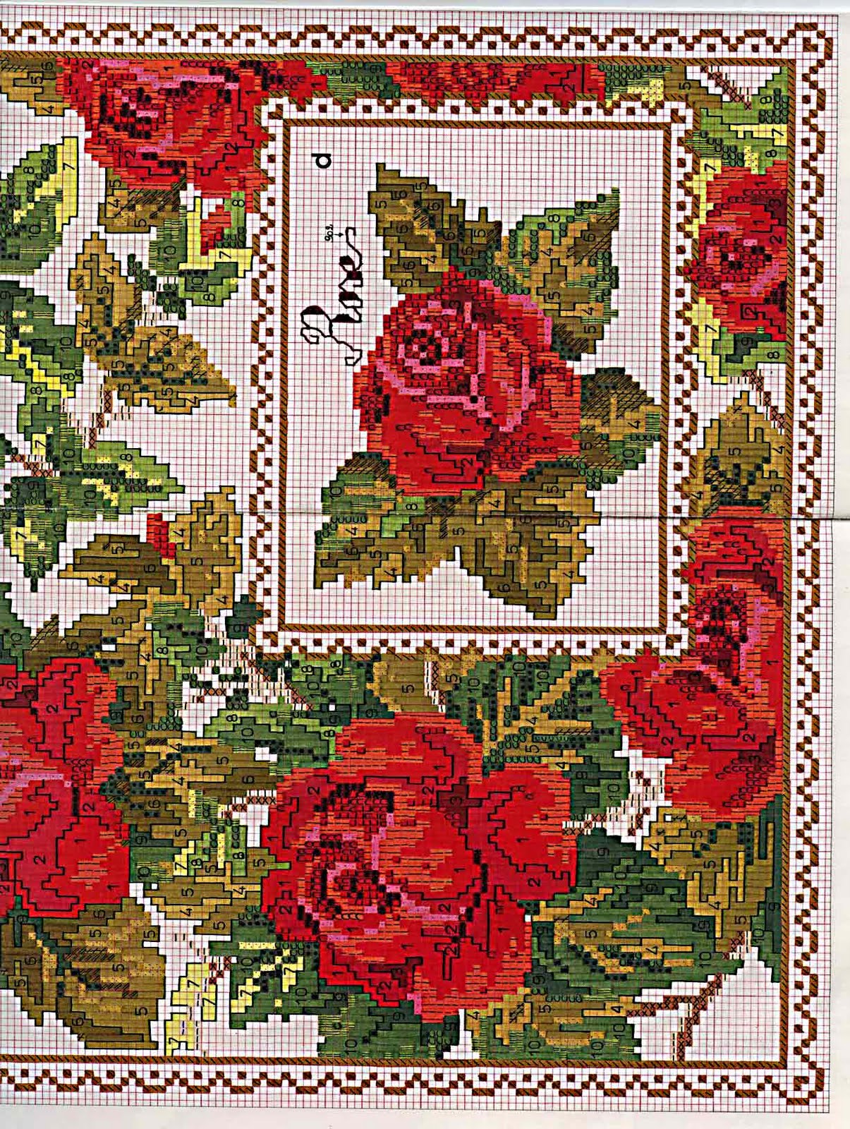Вышивка крестом схемы Скатерть, венок, розы