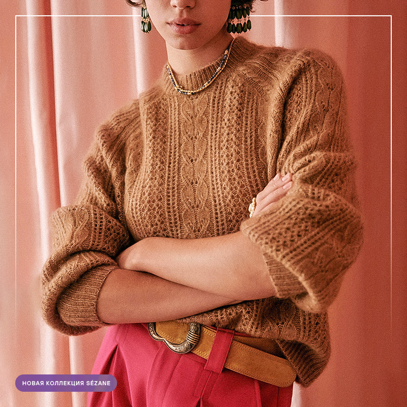 Джемпер связан легким и изящным моноузором.