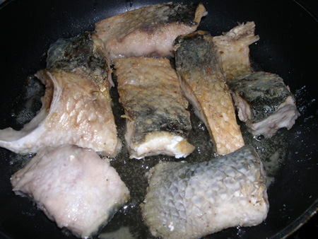 Готовую рыбу сложить в глубокую посуду.