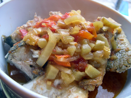Теперь горячей овощной подливой заливаем рыбу