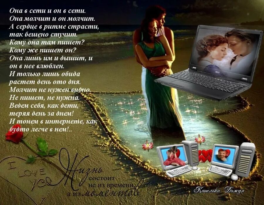 ![]() Он и Она - две грусти…две дороги, Пересечённые теперь уже на век... Игра судьбы, понятная не многим - Весенний, поздний, чистый, белый снег... Она и Он – две страсти, две потери, Нашедшие друг в друге свет зари, Открывшие друг другу в сказку двери, И робко прошептавшие: "Бери..." Огонь, согревший ледяные души... Побег любви на облаке надежд... Глоток воды в пожаре знойной суши... Мечта двух не взрослеющих невежд... Миг без конца... И краткосрочность встречи... Восторг любви… сухая горечь слёз... Рукой судьбы погашенные свечи И лепестки увядших за ночь роз... Щемящая колючая разлука, Быть может, к сожаленью, навсегда... Безмолвный крик рыдающего звука - Такая безысходная беда... Он и Она – девчонка и мальчишка, Не зачерствевшие до айсбергов в крови, Поняв, увы, что жизнь - пустышка, Когда в ней нет волшебного – любви… Она и Он – два голубя с экрана Прекрасный, кем-то снятый идеал, Совпавший со случившимся нежданно Ещё до ощущения начал…. Падение, как будто в лоно бездны, С ещё недавно блещущих высот... Взгляд ввысь наивно бесполезный, Усмешка, исковеркавшая рот... И руки в руки чуть ли не до крови... Щека к щеке, пот струйкой на губах... Взлетевшие куда-то к небу брови... Вкус истинно родного на зубах... Он и Она – незыблемая вера В святую не напрасность бытия, Не найдено - потерянная эра С каким-то отголоском забытья... Она и Он – реальность на ладони, В которой каждый – птица на крыле... Как будто бы сам Бог застыл в поклоне: "Ваш выход, господа - Парад-Алле!.." Быть может, всё пройдёт, умрёт когда-то, Загладит время раны на сердцах, Но и из зеркал печально - виновато Достанет боль, живущая в глазах. Воспрянут ощущения былого… И горькое прозренье: что взамен?!. Мы с вами все – заложники пустого, Идущие, смирившись в этот плен... /Николай Джинчарадзе 18.08.2018/ Татьяна Марковцева родилась и выросла в Москве, Россия, более 20 лет назад вместе с семьей иммигрировала в США, поселившись к северу от Чикаго. Инженер по профессии, она никогда не думала, что когда-нибудь ее работы найдут универсальную привлекательность и тронут сердца десятков тысяч людей из более чем 150 стран, которые посещают ее веб-сайт и ежегодно видят ее работы на выставках. Татьяна Марковцева начала писать в 2010 году, с тех пор выполнила более 500 работ. " Когда рисую, я не чувствую – легко это или трудно, просто ощущаю радость. Мне даже иногда кажется, что я рисую не руками, а сердцем. Может быть, отсюда и предельная выразительность… Просто чувствую все эти линии. Никогда не даю названия своим картинам, названия содержат подсказку, люди сами находят смысл, название и их предназначение. » – Татьяна Марковцева С 2012 года Татьяна Марковцева участвует во многих успешных выставках, художественных ярмарках. По всему миру проиллюстрировано ею более 25 книг, включая стихи, детективы и лирические романы, и при этом вдохновляет многих художников на воссоздание ее линий в своем собственном стиле, например, из стекла, мозаики, украшений, скульптуры, боди-арта и т. д. Её рисунки необычны, просты и невероятно эмоциональны. В них плавные линии, переплетаясь между собой, образуют силуэты людей, излучающих целую гамму чувств, которые порой невозможно передать не то что полноценными изображениями с масштабными сюжетами, а и словами. Но Татьяне Марковцевой удалось отобразить весь спектр человеческих эмоций всего лишь парой простых, но так