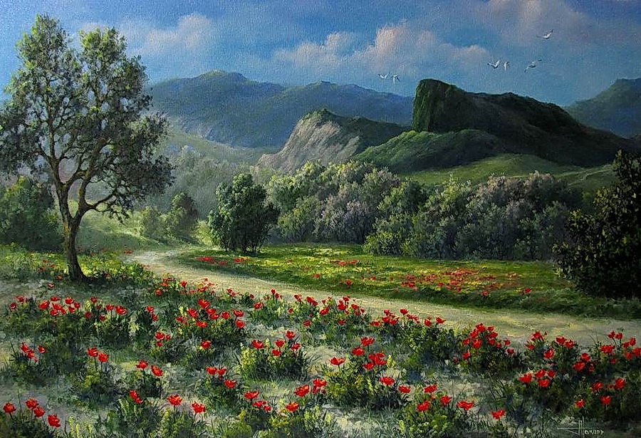[показать]![]() Лето, солнце, теплый ветер, Купол неба голубой. Все цветет, благоухает, Лес и поле за рекой. Мотыльки в цветах порхают. Пахнет скошенной травой. Земляника созревает. И звенит пчелиный рой. Нам природа подарила Разноцветное панно. Благовонье луговое Нас дурманит ,как вино. /Лейда Старостина// |