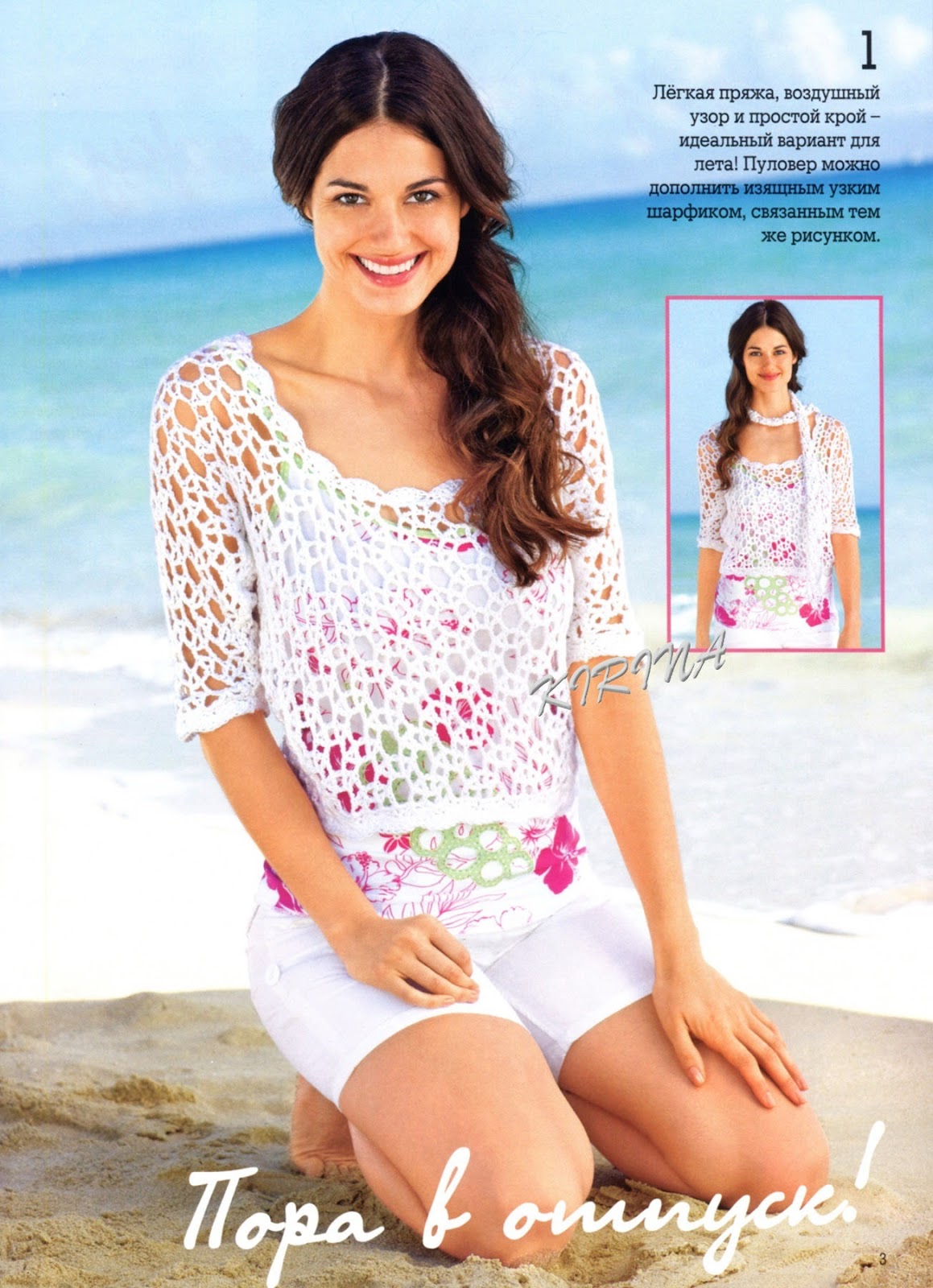 [380x700]Прекрасный костюм из топа и юбки связан узором квадраты.
