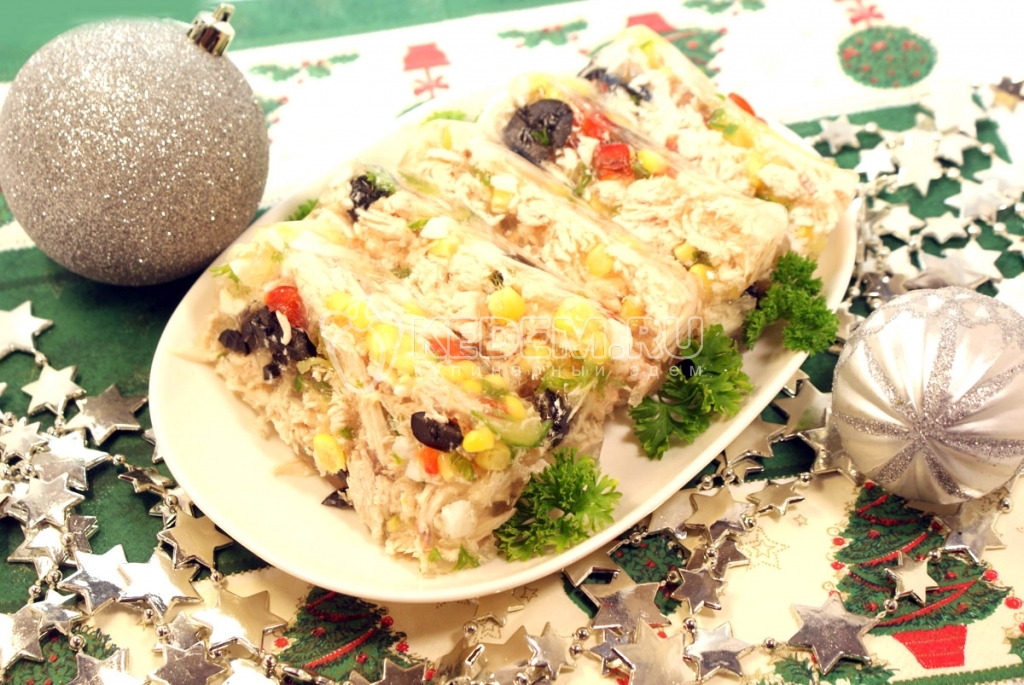 Залить бульоном с желатином. Поставить в холодильник на 3 часа.