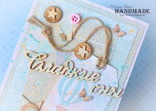 За окном все теплее и ярче,а в блоге Scrap Master уже стартует новое задание - работа в американском стиле с использованием обязательных элементов. Мне казалось, что этот стиль очень своеобразный. Возможно, именно поэтому я его обходила стороной. Пытаясь узнать о нем побольше, прочитала множество статей, благодаря которым поняла, что не так уж много я о нем и знала. По своему личному мнению считаю этот стиль замечателен для создания детских работ. Именно поэтому у меня для вас сегодня открыточка "Сладкие сны".