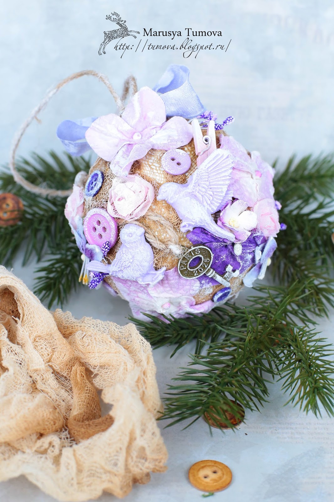 Сегодня хочу вам показать еще один интерьерный шарик "Настроение праздника" для украшения дома, который теперь живет у очень талантливой мастерицы . Пусть он приносит ей радость и вдохновляет ее на новые шедевры!