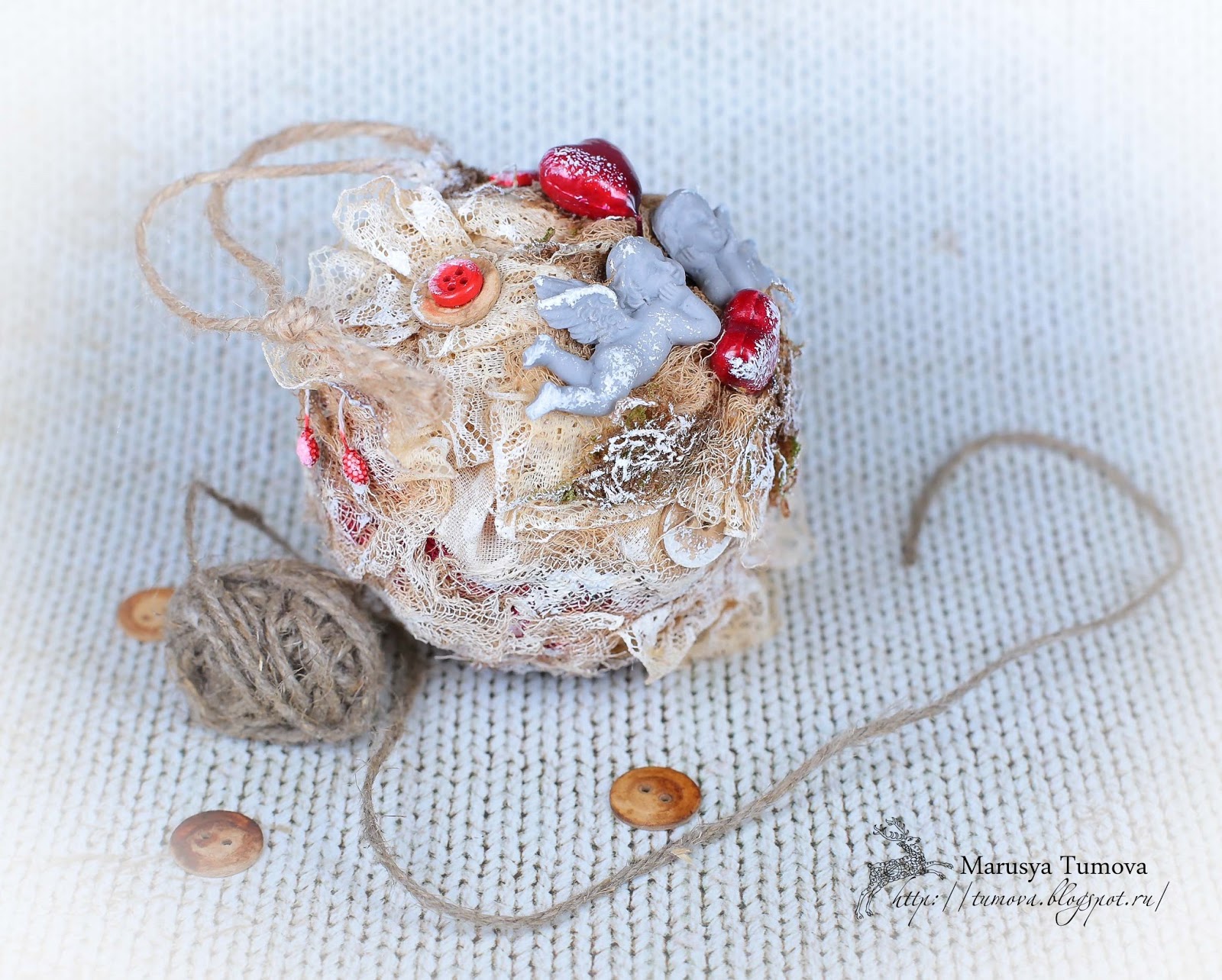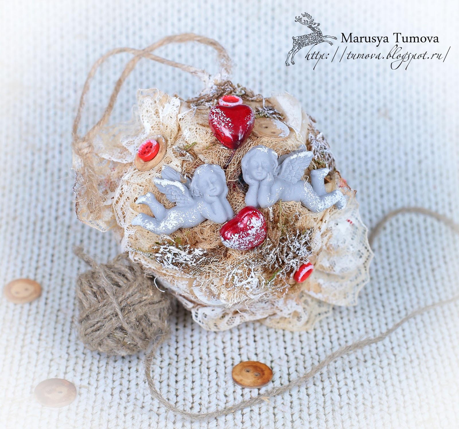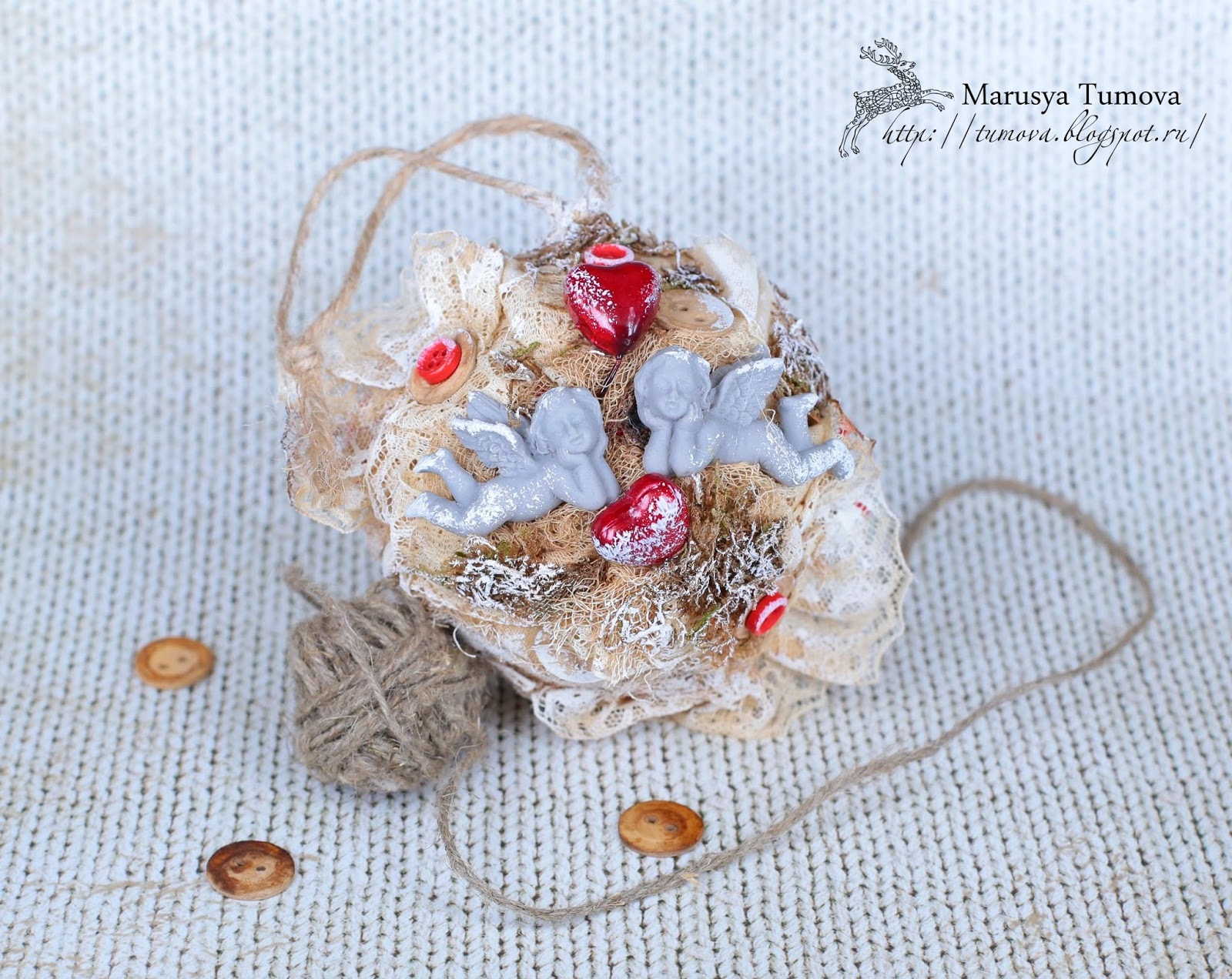 Сегодня хочу Вам показать еще один интерьерный шарик. Интерьерная игрушка хороша тем, что может украшать ваш дом круглый год и служить подарком на любой праздник. Данный шар "Охраняющие чувства", послужит хорошим подарком на приближающийся праздник 14 февраля - День Всех Влюбленных".