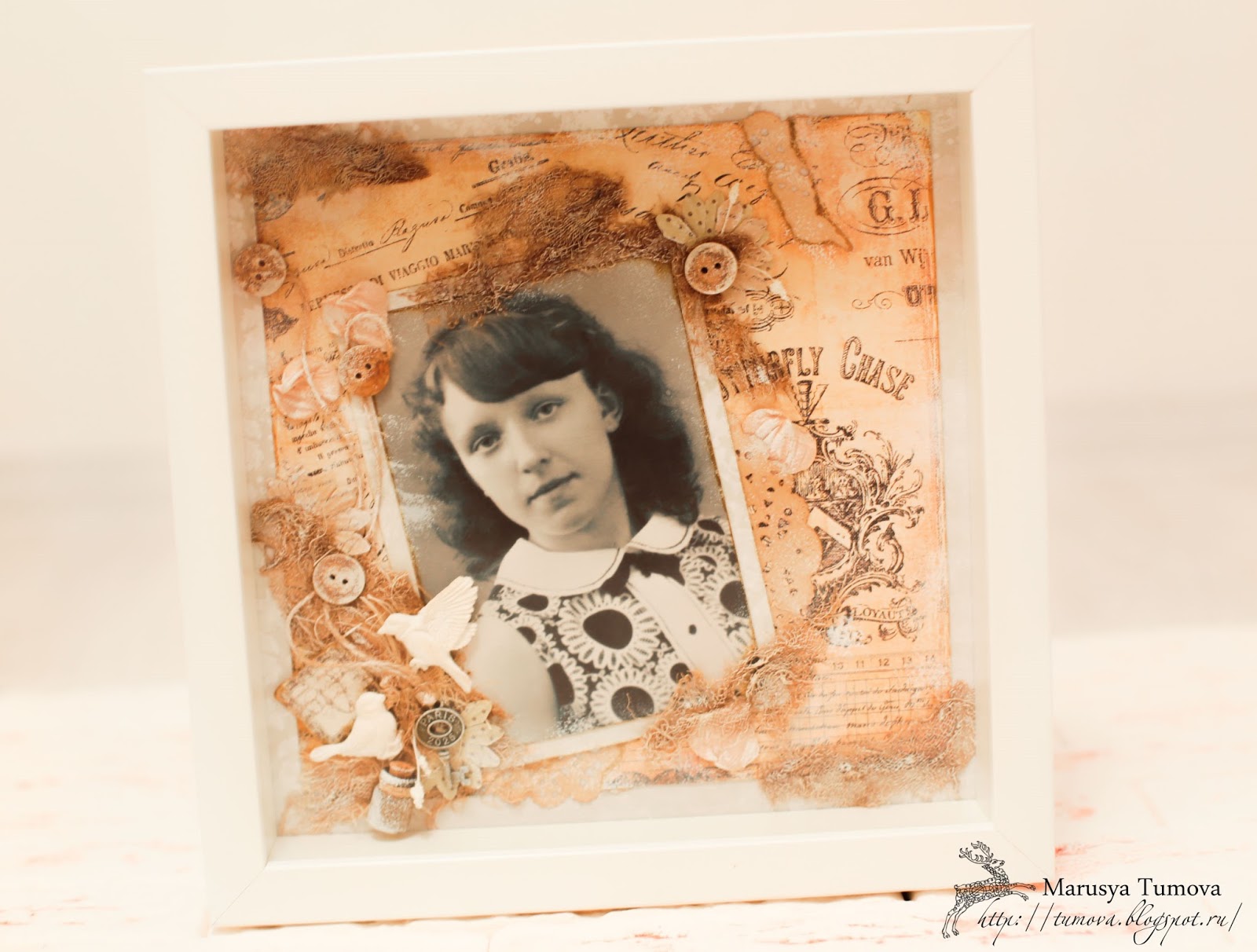 Дорогие мои, сегодня я хочу Вам показать фото-панно, которое у меня заказала замечательная девушка для своем мамы. При всей винтажности захотелось сохранить некую воздушность и чистоту. Очень надеюсь, что у меня это получилось.