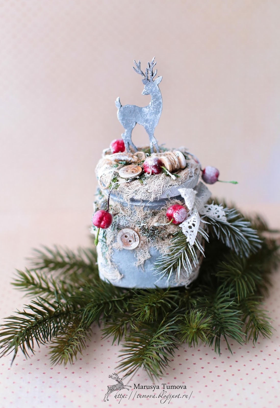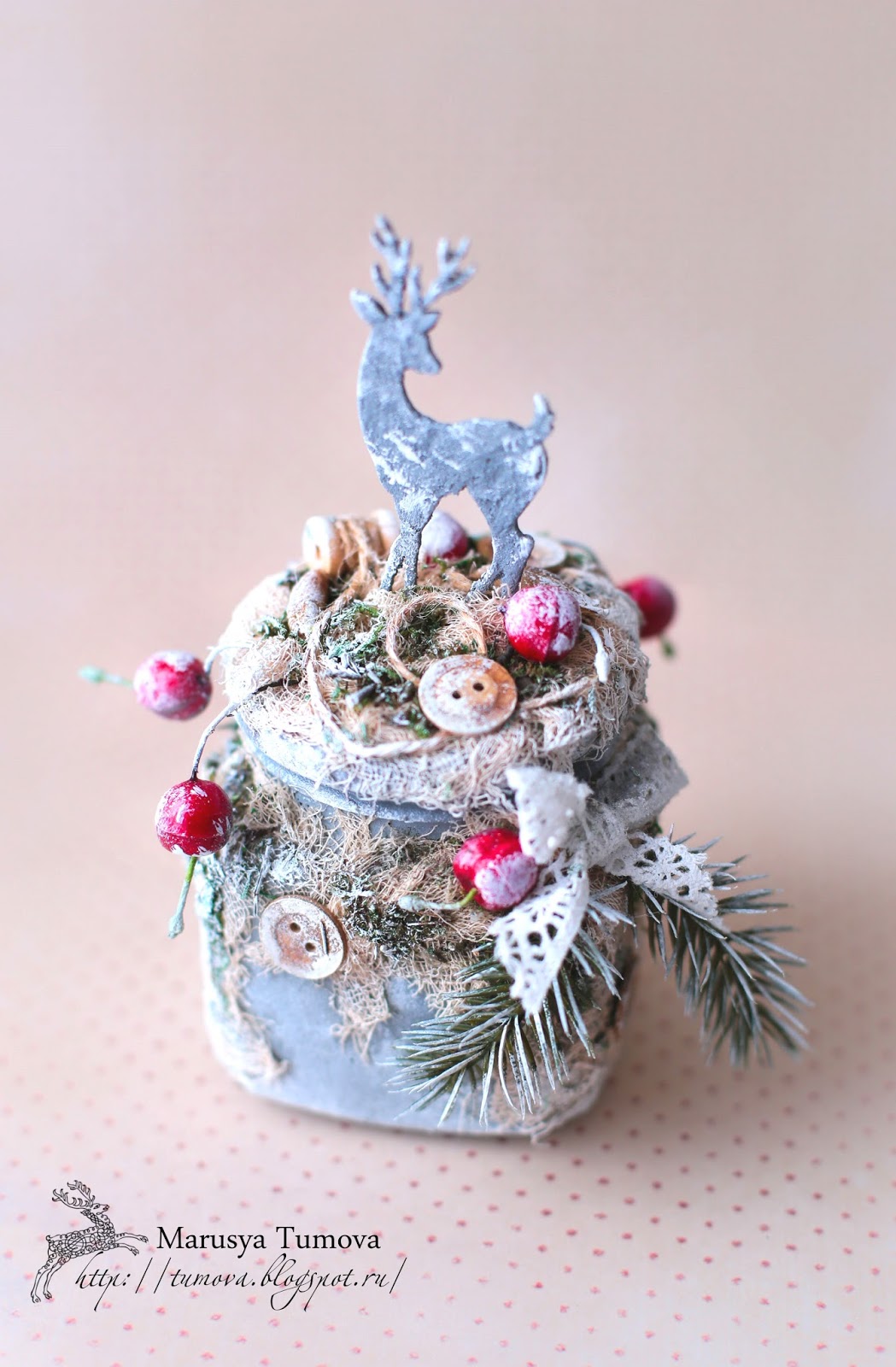 Когда на землю спускается первый снег, все вокруг становится по-особенному волшебно. Холод поздней осени уже не удручает, а "осенняя депрессия" грустно плетётся в самый дальний угол шкафа до следующего года. С первым пушистым снегом, жизнь приобретает новый смысл: снег, Дед Мороз, ель, подарки, свечи... Преддверие Нового Года поистине самое чудесное время, потому что даже взрослые начинают верить в сказки. Люди становятся добрее, и по - детски радостные. Эта баночка "Зимняя сказка" отражает то самое чувство волшебства и зимней красоты, которое живет внутри каждого из нас. Ведь грациозные олени и яркие ягоды с ароматными ветвями ели под покровом белых одёжек - это настоящая сказка...