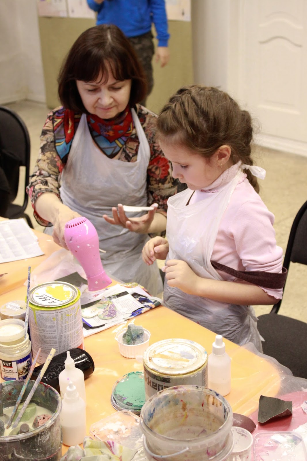 Есения сразу отправилась на МК по декупажу (моя девочка).