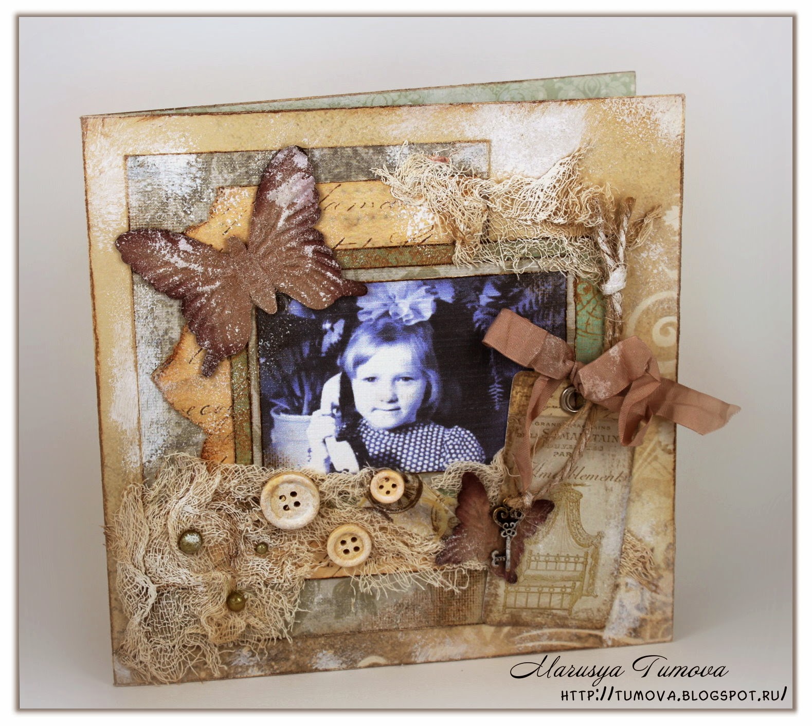 Порой даже мамам нужно напоминать, что в душе они всегда остаются маленькими девочками. Моя заказчица именно так и сделала и заказала у меня открытку в винтажном стиле для своей мамы. На фото виновница торжества.