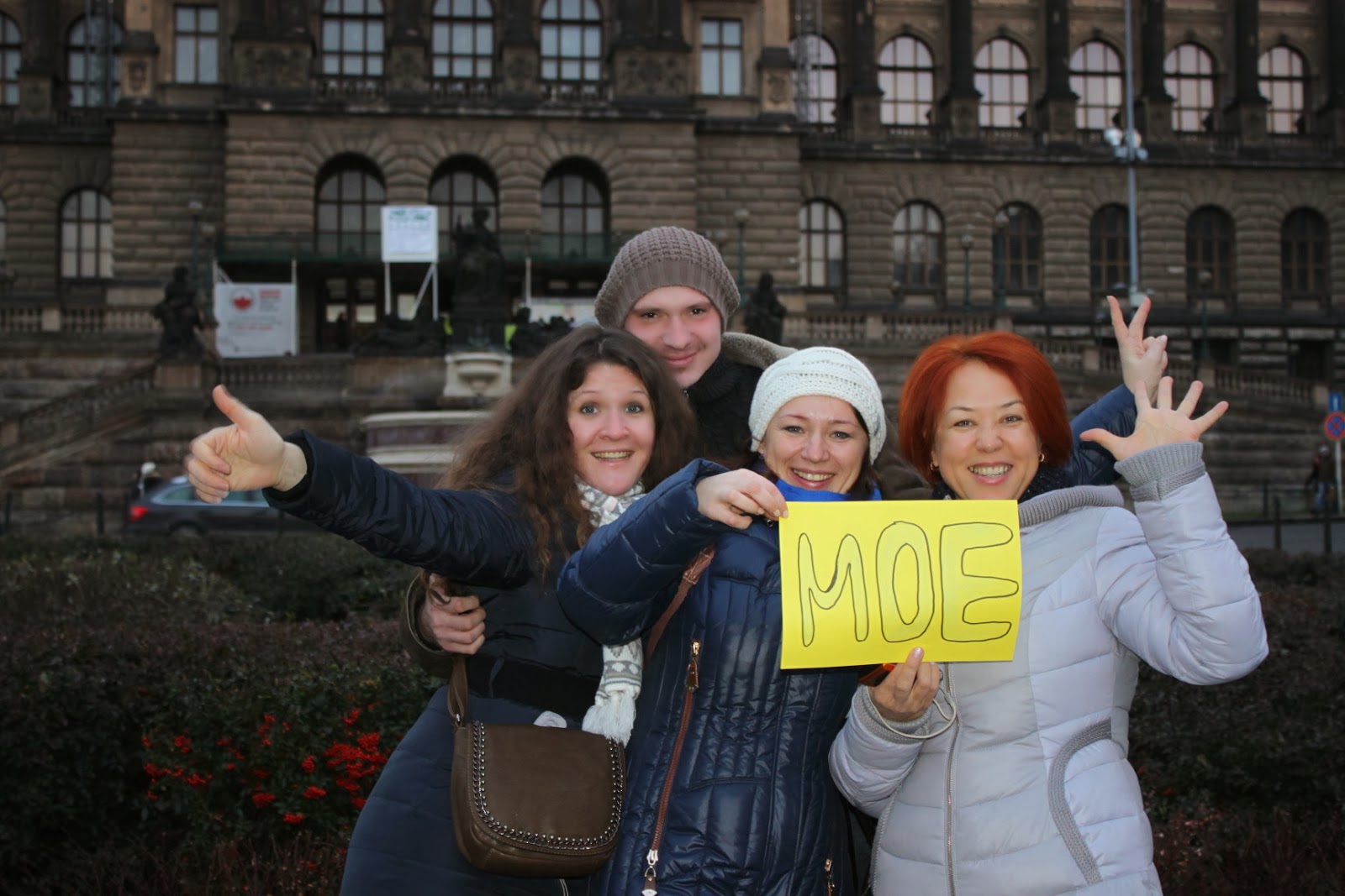 После отдыха от перелета мы направились на Вацлавскую площадь, там нас попросила поучаствовать в маленьком флешмобе))