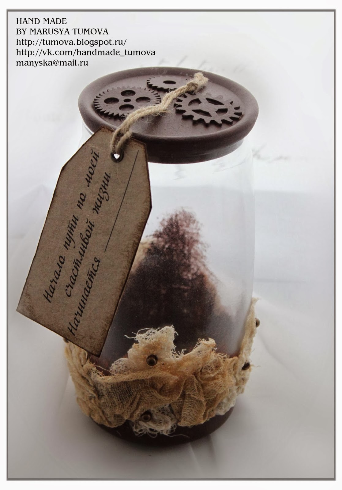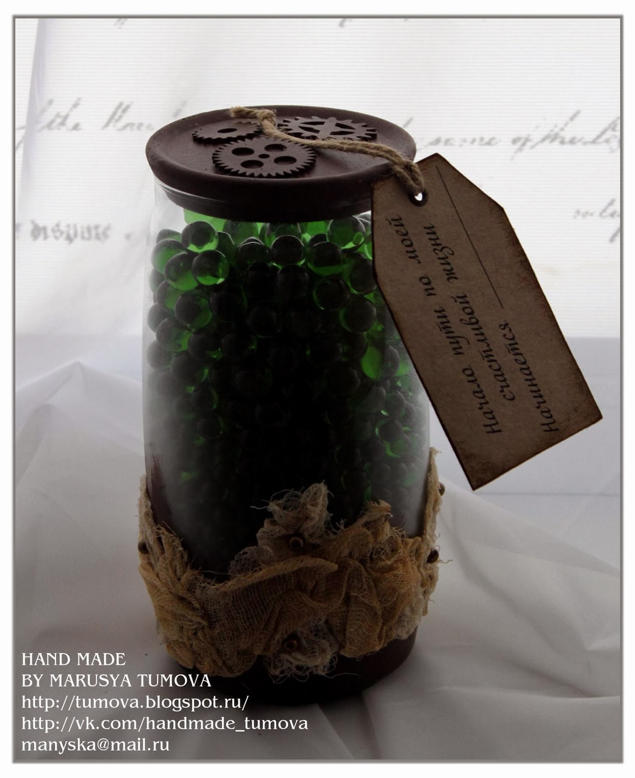 Самое интересное, что эту баночку можно использовать, как конфетницу, подсвечник или шкатулочку.