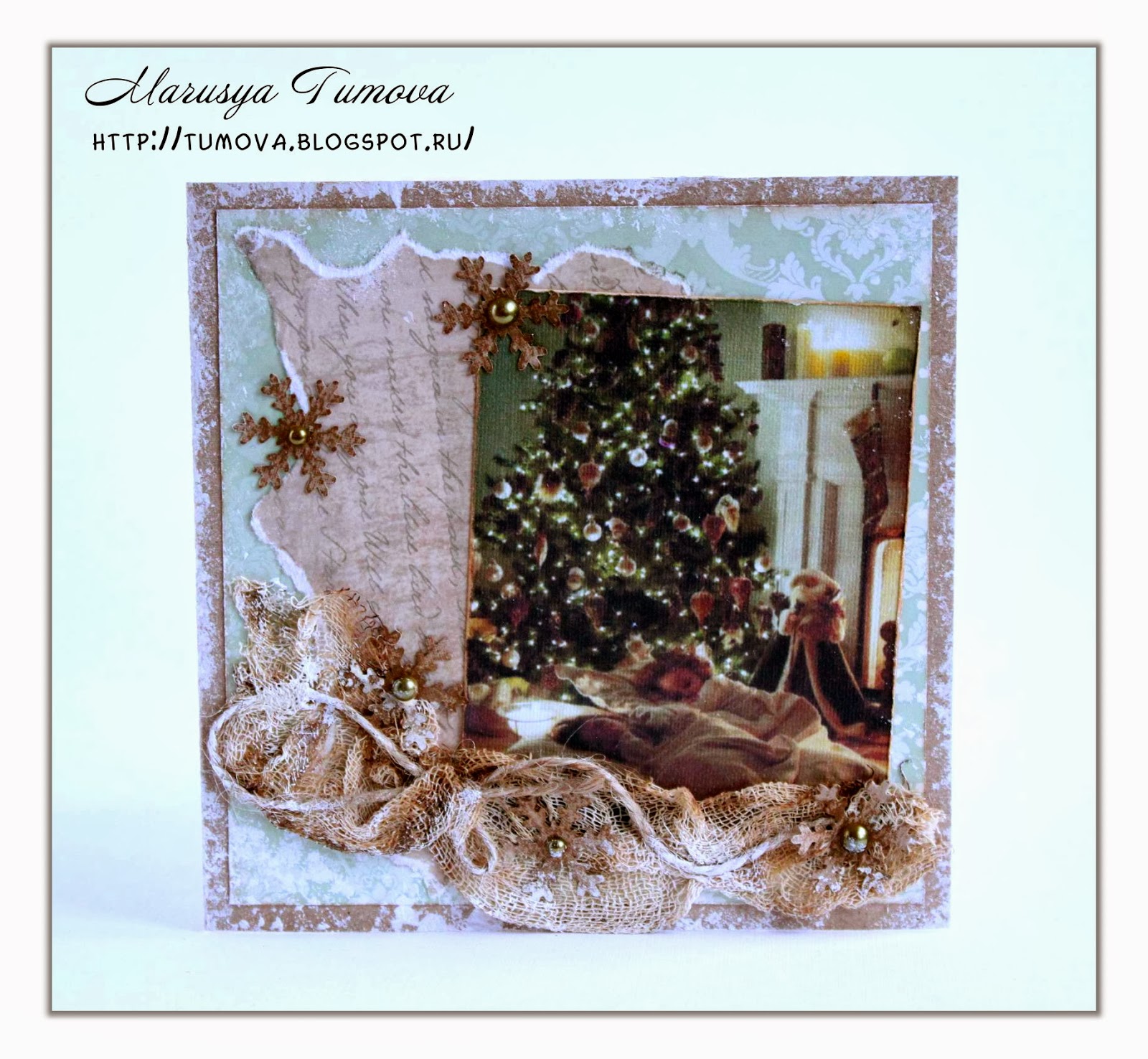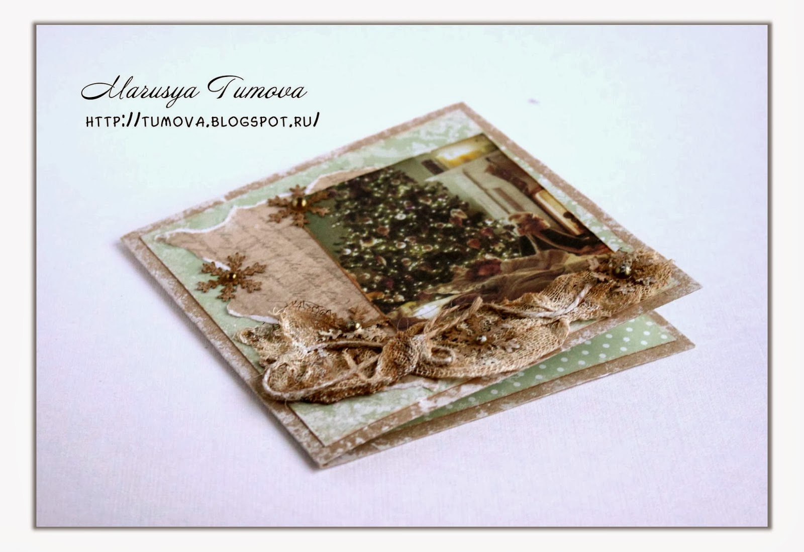 В начале декабря у меня был маленький мастер-класс на котором мы делали вот такую открыточку: