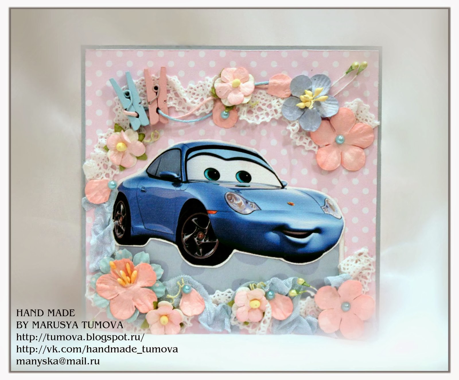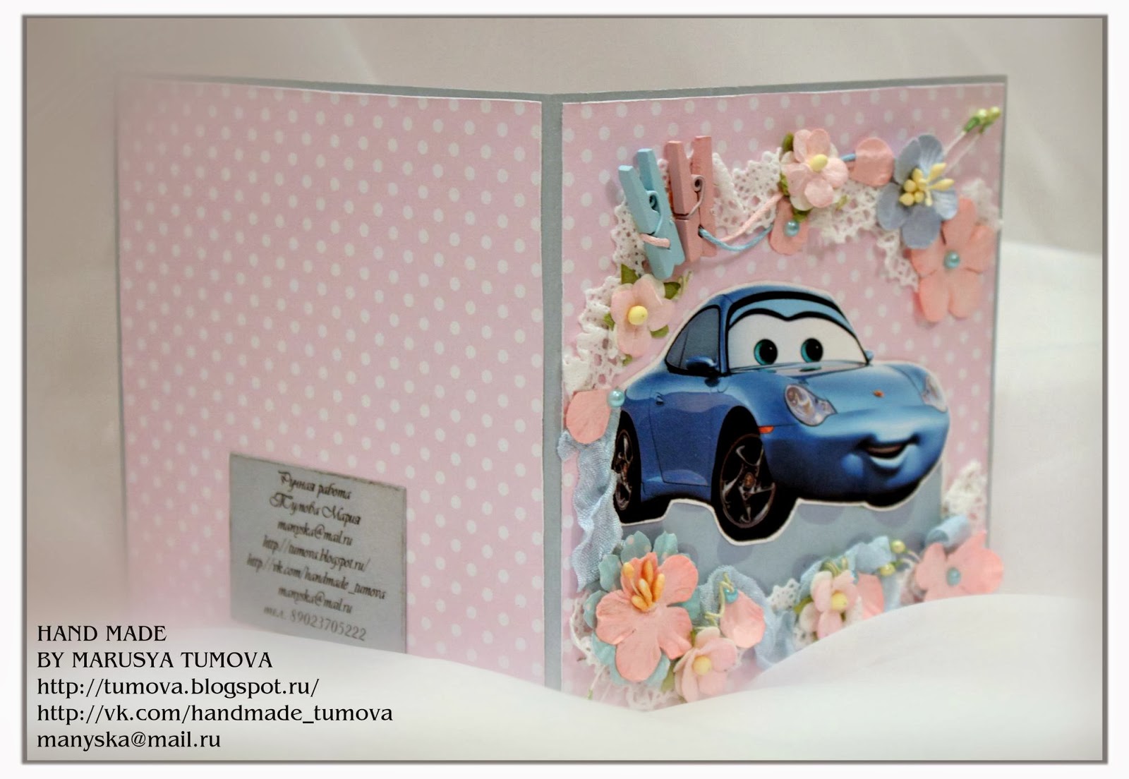 Дело в том, что у меня опять та же заказчица заказала детскую открытку для малыша, которому исполниться 1 год. В просьбе было указано, чтоб в открытки присутствовала машинка.