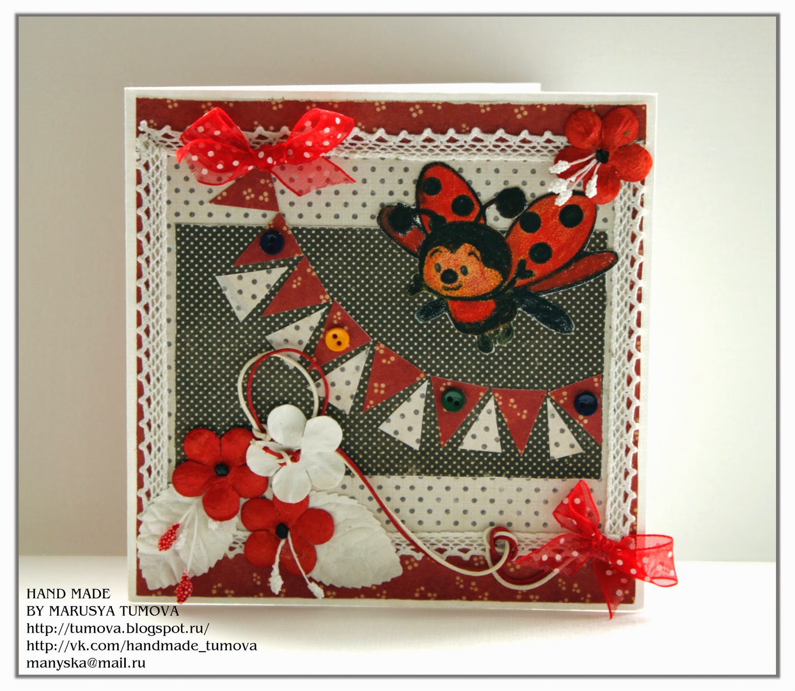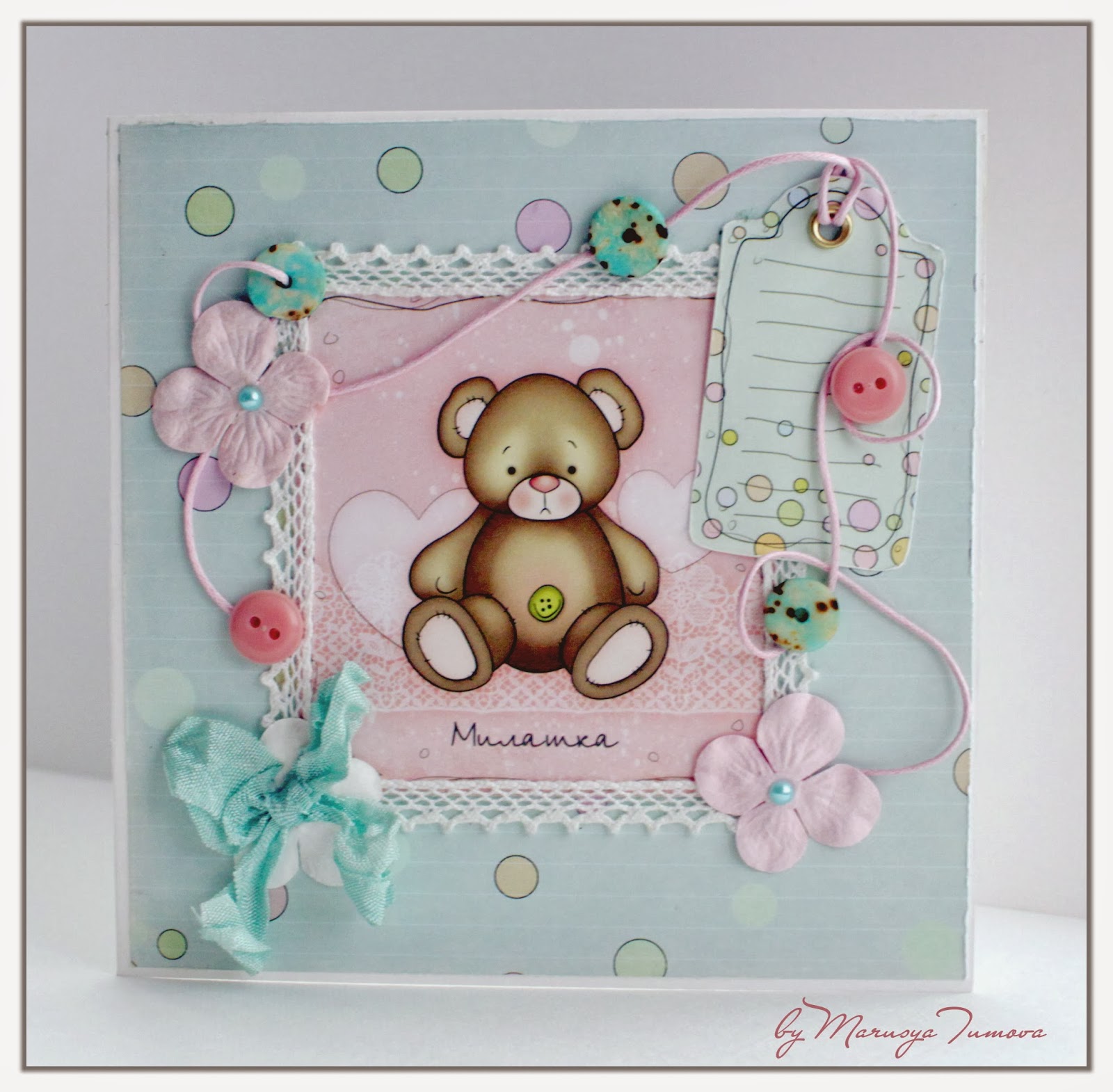 Вообще, если честно говорить, то детская тема - это не моя тема и я всегда с большим трудом делаю детские открытки. Но я стараюсь совершенствоваться и продвигаться в разных направлениях ведь то, что кажется сегодня трудным - завтра будет легче простого.