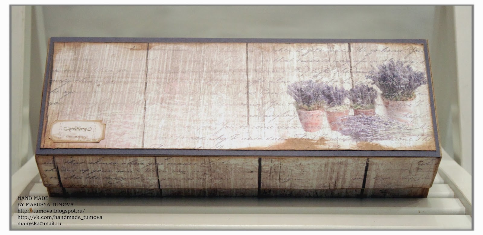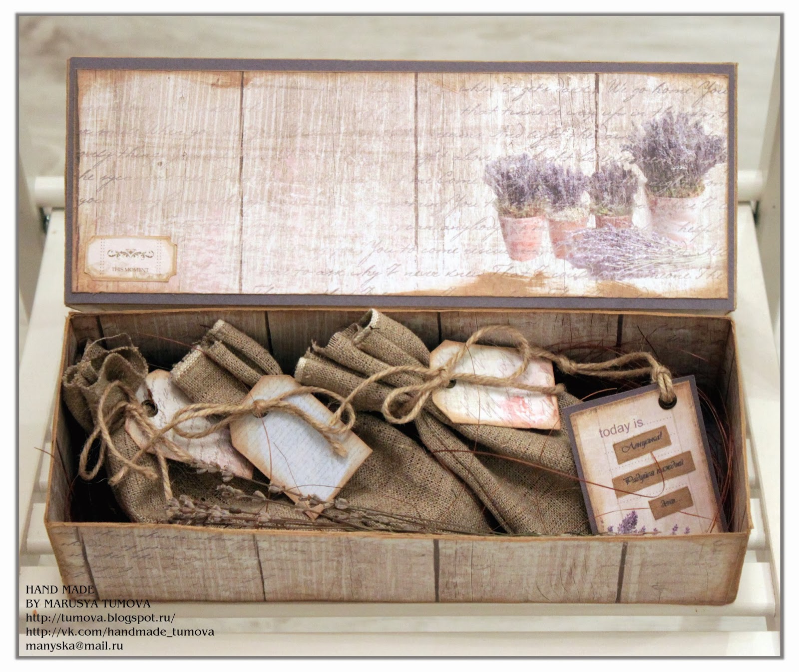 На днях ко мне обратилась подруга с просьбой сделать красивую упаковку под мыло ручной работы. И я с радостью откликнулась на ее просьбу. Захотелось сделать что-то в стиле прованс и вот, что у меня получилось: