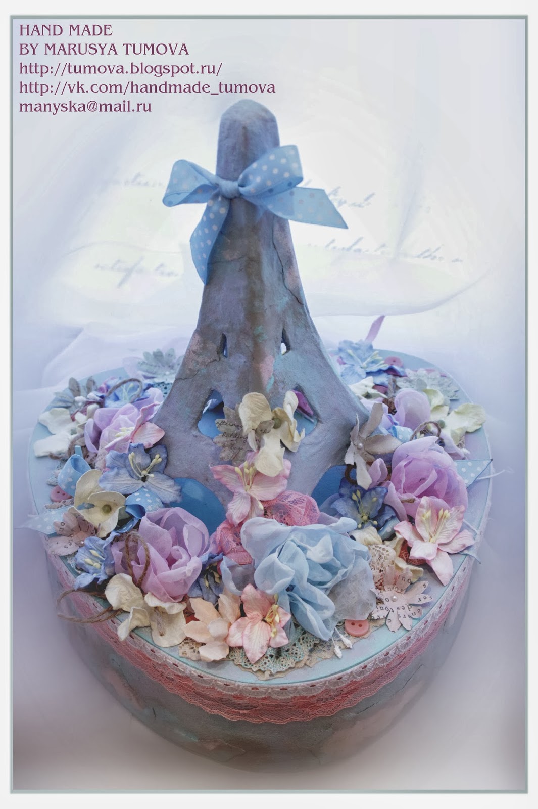 Сегодня хочу Вам показать шкатулочку "Париж", которую я делала для одной молодой пары на их свадьбу. Похожую шкатулку я уже делала однажды по чудесному МК, который я видела в блоге у Юли "Время Идей". Но в этот раз сама шкатулка из фанеры, а башню делала по технике Папье-маше, при помощи массы.