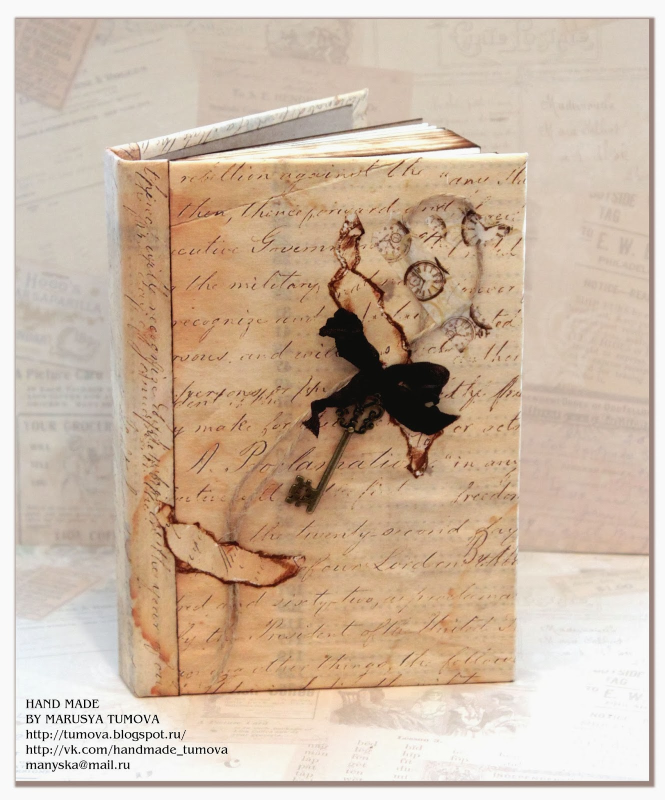 Обратился ко мне один очень приятный юноша с просьбой сделать необычную обложку для блокнота. Ему хотелось, чтоб она была под старину. Я приступила к заказу и вот, что у меня вышло.