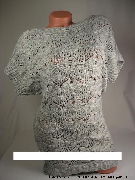 [показать]Широкий ажурный бордюр — визитная карточка этого свободного непринужденного джемпера.