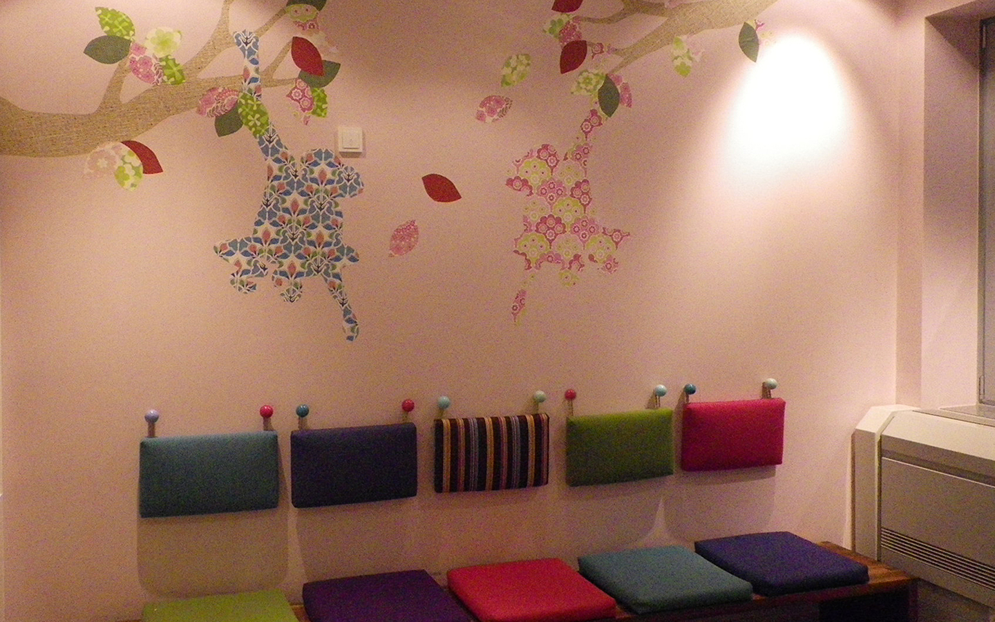 6. Выбираем мелки сухой пастели нужных цветов и как бы состругиваем макетным ножом цветной порошок. Потом с помощью ватных палочек втираем цветной порошок вокруг мотивов, создавая легкие тени. (каждому цвету своя палочка).Темной акриловой краской (той же что и красили в начале) затеняем края доски, нанося «чпокающими» движениями при помощи губки. Можно использовать и патину.