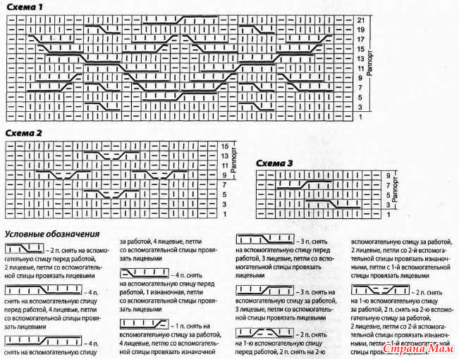 Основной узор выполняется по схемам № 1,№2 и №3.